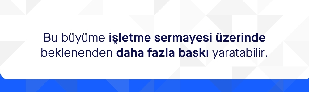 Şirketler hızlı büyüme dönemlerinde genellikle artan sipariş hacmi ile birlikte daha fazla hammadde, üretim ve operasyon finansmanı ihtiyacıyla karşılaşır.