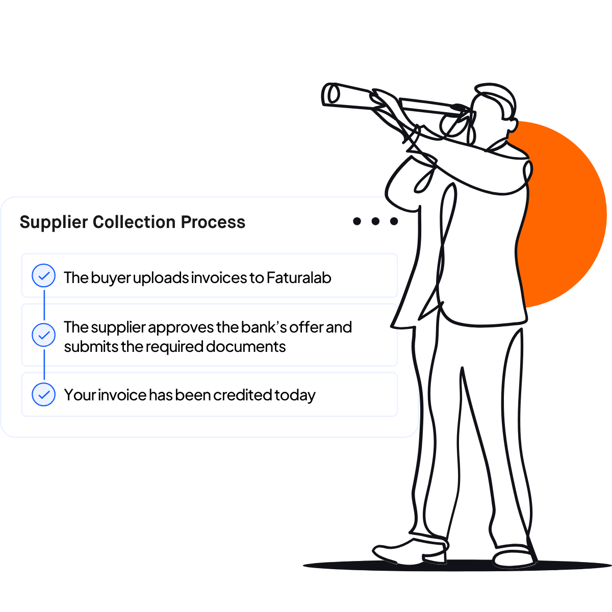 With Faturalab, your suppliers can collect outstanding invoices, when and in the amount they need, on the same day they requested. This allows you to either extend your payment terms or generate additional income from this process.